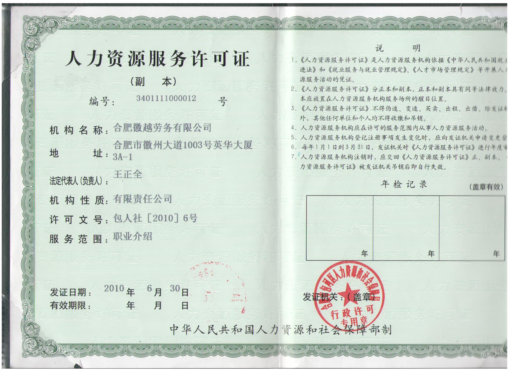 人力資源許可證掃描件